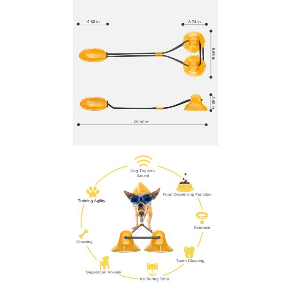 Indestructible Rubber Dog Treat Ball Bite-resistant Double Sucker Chew Toy Dog Pet Toys With 2 Suction Cup Rope